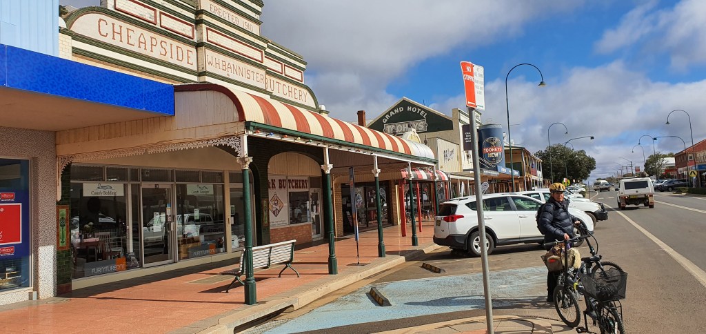 There’s always a compensation – our van park is within biking distance of the main street. Cobar is a fascinating old mining centre, with lots of graceful 19th Century architecture. The name Cobar comes from the indigenous people’s pronunciation of the word ‘copper’ – due to its inception as a copper mine.