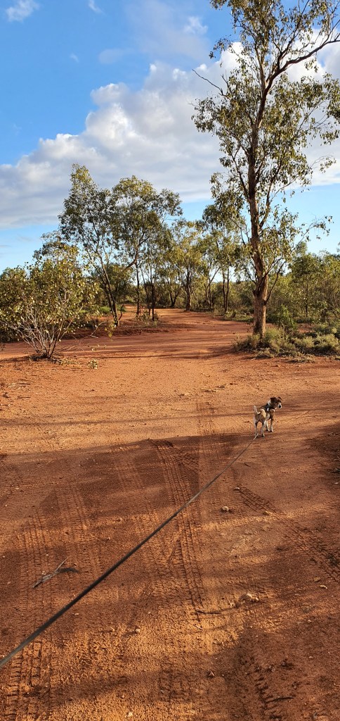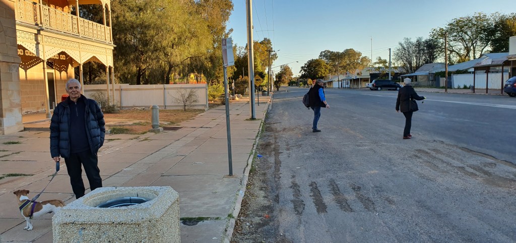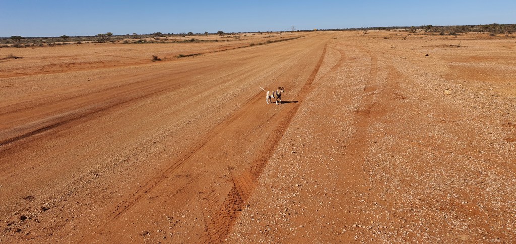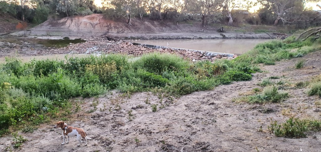 We find an almost caravan park by the half empty river, just out of Wilcannia. Here Charlie is again run at by three large dogs. Scary moments for a little dog – and more particularly his big mother (yes me).