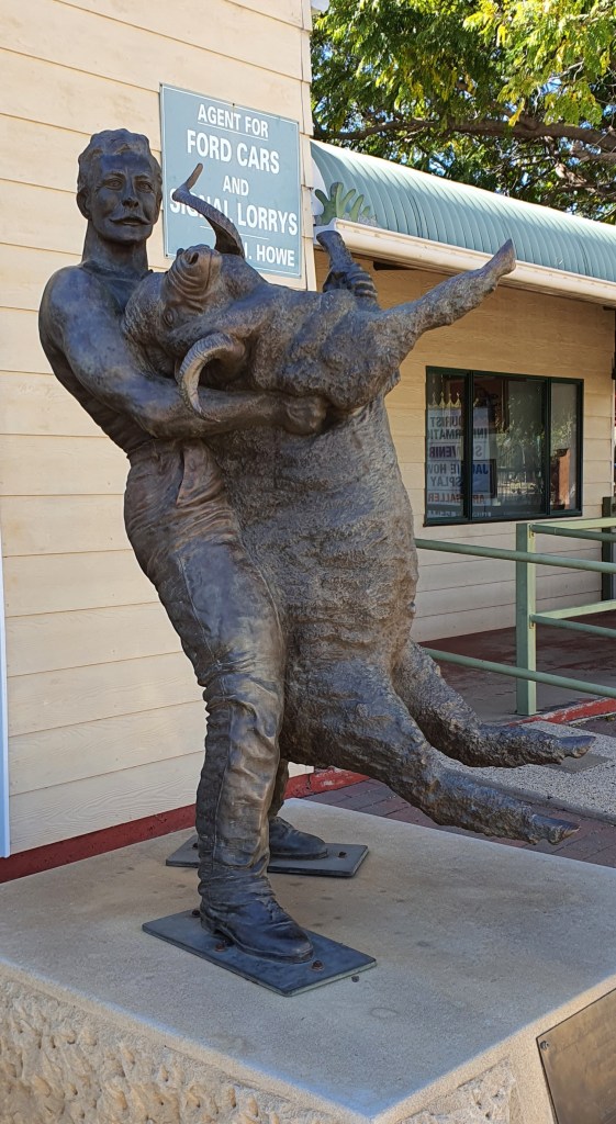 Eulo is charming, a short bike ride into town. The local shop sells fossils along with coffee and groceries and they’re very proud of their diprotodon past. Diprotodons, just in case you missed it at school, as I did, are the ancestors of wombats and koalas, the largest marsupial ever known to have existed and roamed Queensland and New South Wales among other places from about 1.5 million years to 45,000 years ago. Stood two metres tall and were three metres long. Wow!
