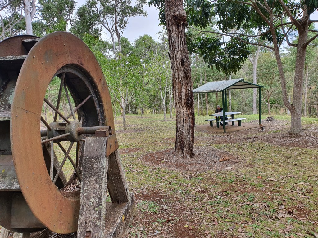 Now we go on to Ravenshoe, finding a park with green grass down to a flowing river – who would have thought?… a river with water in it, called the Millstream. So the wheel which used to turn the mill is now preserved in the Rotary-maintained park.