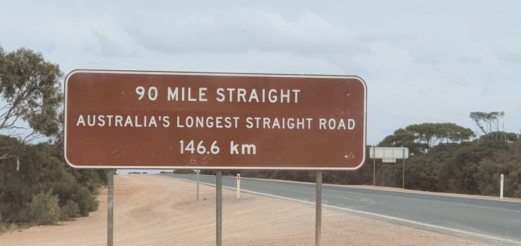 We’re almost at the end of the Nullabor Plain now, and travel the longest straight road in the world (we’re told, not just Australia) – 146.6km without a turn.