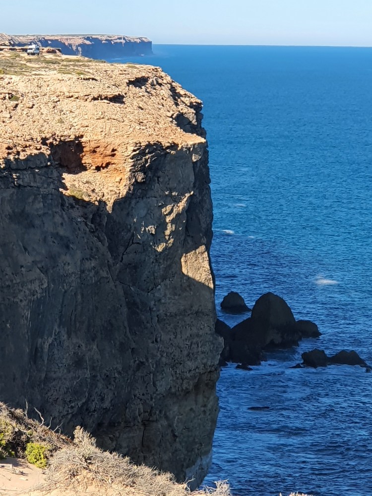 When we get to Bunda Cliffs, however, it’s exceeds everything I had imagined, borne of photos and videos watched across the years. For me, it’s better than seeing the Pyramids, better than the first time I rode the lift to the top of the Empire State Building, better than seeing the Eiffel Tower for the first time. The adrenaline is high, but all I can show you here is the photos – so inadequate. Certainly the highlight of our journey so far!