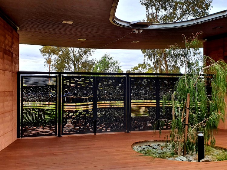 Not only that, but Ted, forever the architect, discovers one of the best building he’s seen in Australia, and here it is, in this out-of-the-way place. It’s the Pilbara Aboriginal Medical Centre – PAMS, a piece of art in itself: