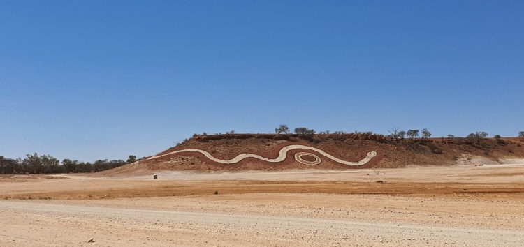 5th September, 2021 – to Boulia, Bedourie It’s a day heading south into the Simpson Desert. No images can convey the immensity of the yellow desert. When we see the dust ahead we wait for a car/truck/roadtrain to appear, but it’s just a dust storm. Bedourie (which means ‘Dust Storm’) is our overnight stop, a meal at the Royal Hotel, good morning to a camel called Priscilla, cross Eyre Creek and we’re into the hard yellow stonsy desert again.