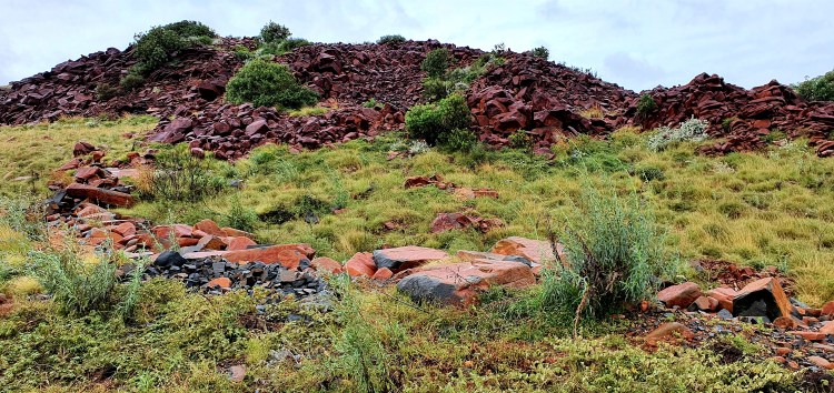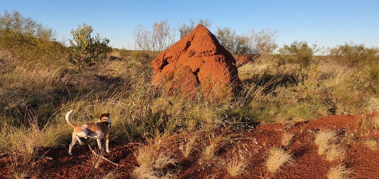 … before turning left for Dampier and Karratha. The countryside is different again, with so many different profiles and bright rusty termites nests.