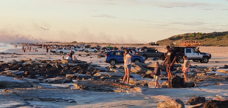 Dogs are off-leash (“I’ve never had a dog fight in this camp” says an elder as we arrive), the beach is wide, with a ten metre tide and the water is clear as champagne.