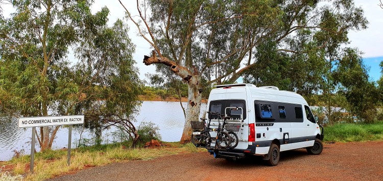 From here we’re heading, after a couple of stops, across the Tanami Desert (about 1,000 km of corrugations we hear), so we might as well enjoy the luxury while we can.